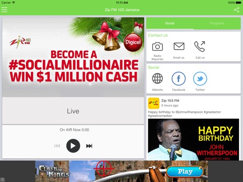 Zip 103 FM, your high energy station. Jamaicas hottest urban radio station.