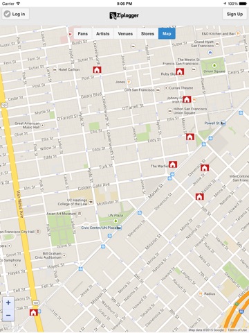 Ziplogger changes the way that musicians, fans, performance venues, and music merchants communicate. It uses location services to let you users know who’s near you. An artist can tell a venue that they have hundreds of fans in their town, a promoter can find the biggest band in a certain region, and the most popular venues. Venues can leverage their efforts by connecting with local music merchants. With Ziplogger, industry representation isnt needed to connect with others about music.