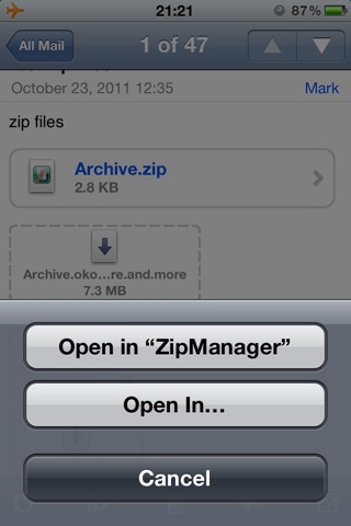 Open zip files from mail, safari or other apps and unzip it!