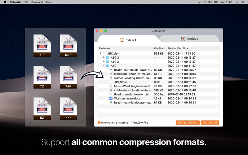 ZipMaster is a handy app to compress and decompress files with almost all usual archive formats, with NO ads.