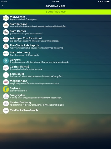 - Shopping Mall: ให้การค้นหาทุกร้านค้าและร้านอาหารในห้างสรรพสินค้าเป็นเรื่องง่ายๆผ่าน Floor Plan ที่พร้อมใช้งานตลอดเวลา