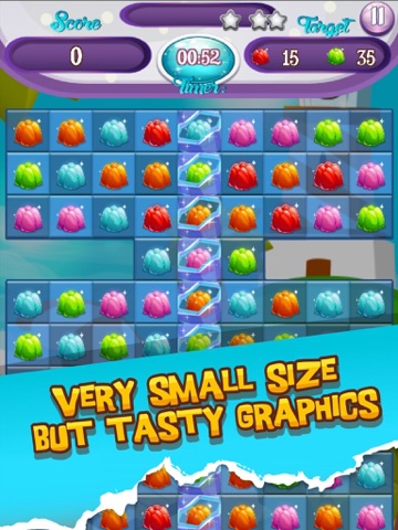 Swap and slide lovely candies jelly jam on the board, arrange candies into matching groups of three or more to collect. Chain rection could happen when empty spaces are filled in. The longer the chain, the higher the score you can get in one shot.