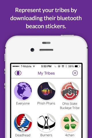 You join tribes, societies, or cliques by downloading tribe stickers which each contain a Universal Unique Identifier (UUID) that Bluetooth LE uses to broadcast and scan for discovery.