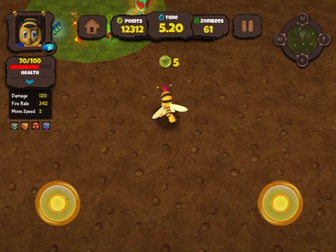ZomBees is a 3rd person cartoon shooter that features a dual stick shooter. The main objective of the game is to survive as many days as possible as you survive wave after wave of ZomBee attacks. When ZomBees are killed both points and items are dropped. Upgrade your weapon from everything from Fire, Ice, Cure, triple shot and increase your attack rate, damage per shot, and movement speed.