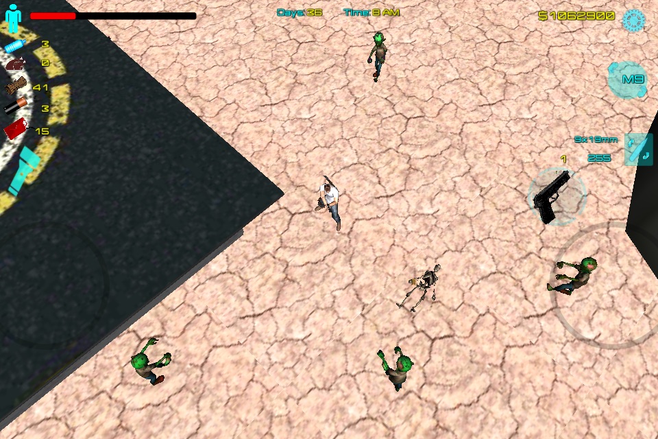 Lock and load with high tech weaponry; and once you are heavily armed, take on some missions such as zombie survivor rescue, or home defense, or zombie boss assassination for extra cash. Make sure you always stock up on ammo, or youll have to fall back to your trusty machete to clear the way.