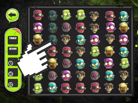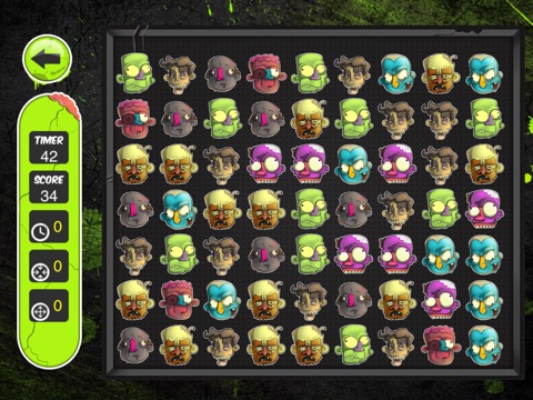 The main objective of these zombie themed game is to pop as many “heads” as possible. In order to do so two or more of the same objects need to be touching. It can be vertically, horizontally or diagonally; as long as they are touching!