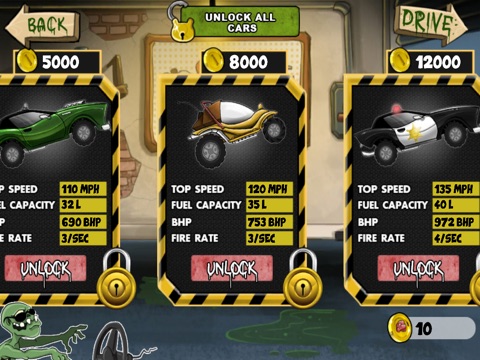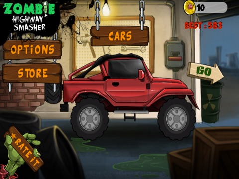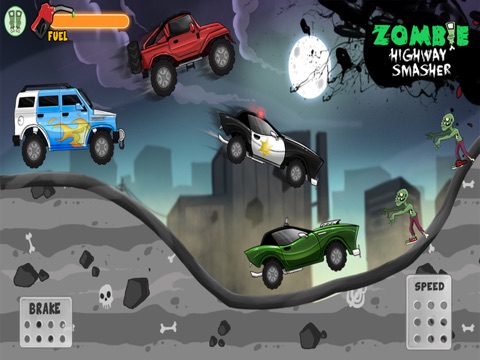•Kill 4 different species of zombies to earn gold coins and unlock better cars with better fuel capacity.