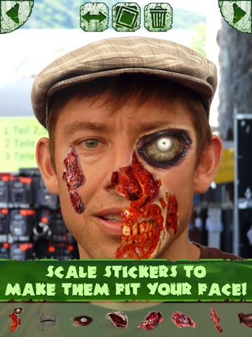 The walking dead zombie pics have never been easier to produce, all you need is this photo montage maker with scary, but funny stickers and picture editing is turned into real fun! If you like zombie games, this free picture editing software is the right choice for you! Why bother with sticker makers when you can own an awesome zombie photo booth free where it is so easy to edit pictures? Convert your pictures and selfies into horror pics! Unleash your imagination, create most dreadful profile pictures for your fb wall, download one of the top photo editing apps for your device and make totally creepy photos to pull pranks all around. Zombie Photo Maker Booth is here to make it all possible!