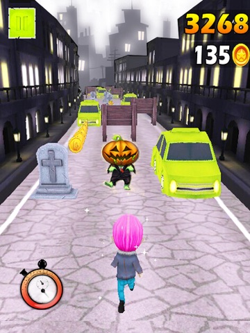 Help awaken Zombies to Halloween escape ,accidentally built atop an old cemetery. Run through nasty swamp, old village, cursed hills and fallen temple locations.