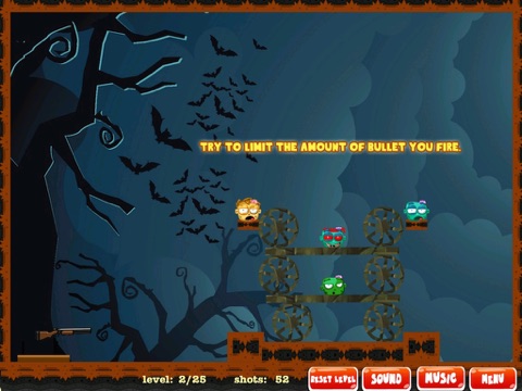 The zombies and other creatures are hiding in the haunted night. Shoot at them with the rifle to get them and move from level to level using the least amount of bullets. "Starts out kind of easy but gets harder and harder to find all the zombies as the game progresses. Very fun!" Lena H. How many levels can you clear of the zombies? Download Now!