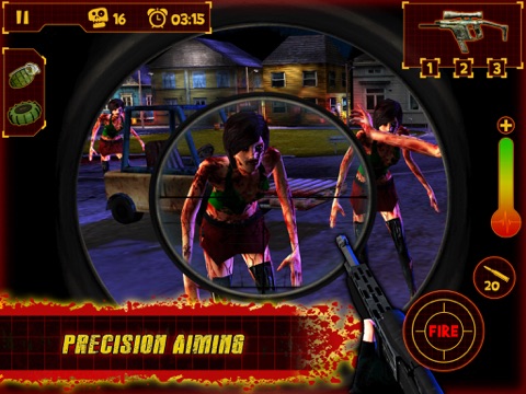 Zombies are running amok at the junkyard, playground and the diner. Youve gotta kill them before they take over! Experience the action-packed shooting with the mini-gun, machine gun, shotgun and of course the sniper rifle. When was the last time you tossed grenades into a zombie party?