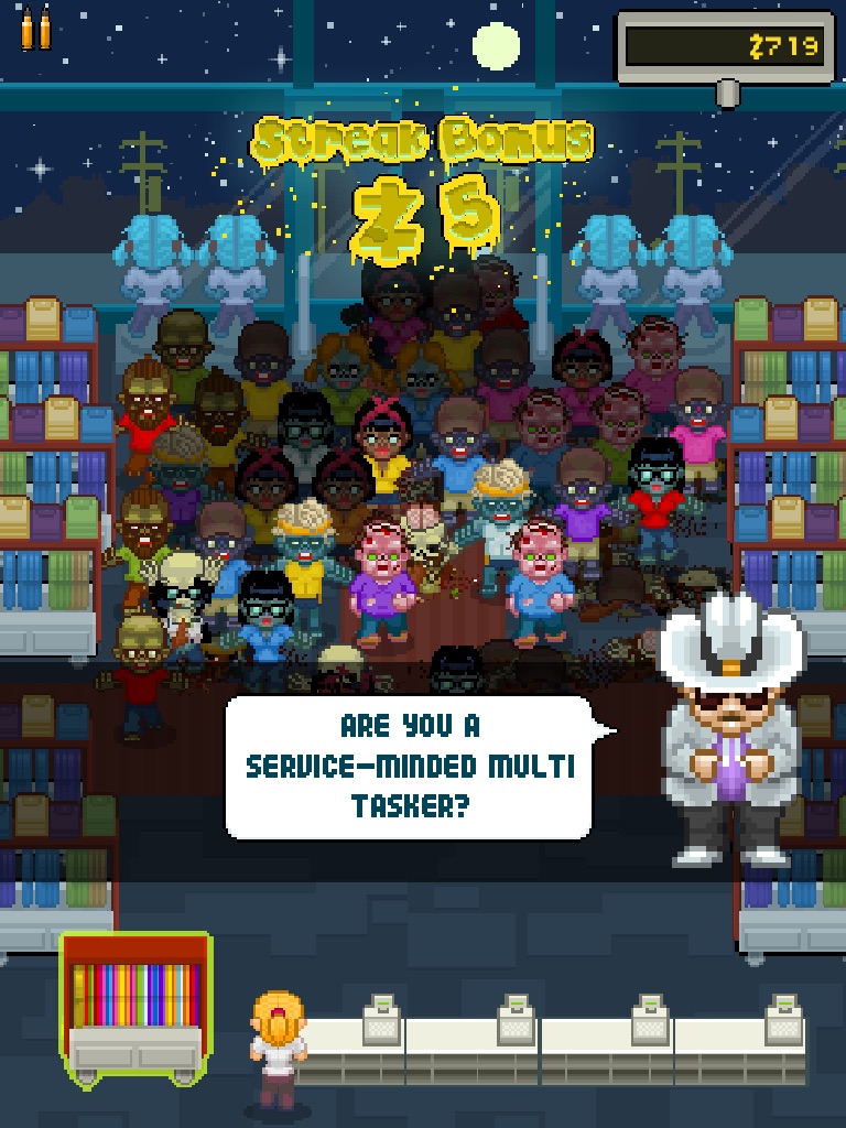 Clock in for the night shift at the trendy Zombie T-shirt Store and be in charge of returns & exchanges. Working in retail has never been this fun and exciting!