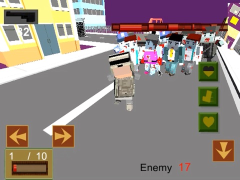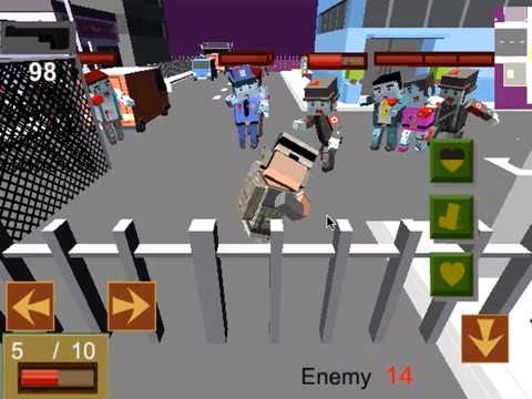 The city of zombies walking around on the stage, fight shoot a bullet.