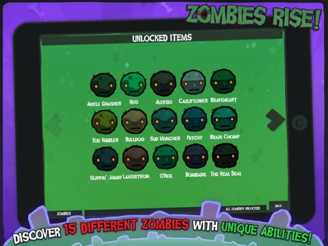 - Unlock 15 special Zombies each with unique, ghastly abilities such as: