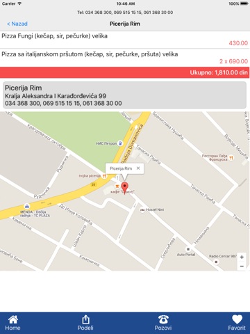 - Mapu i kontakt podatke izabranog restorana!