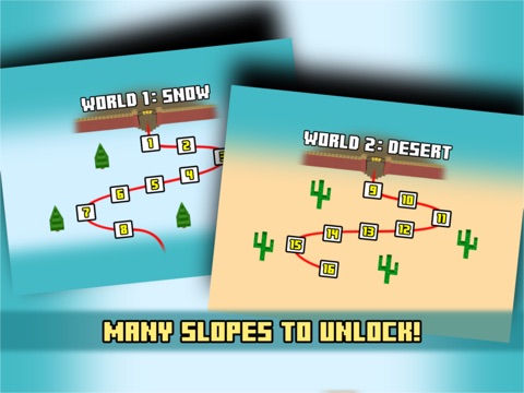 Ski on slopes across 2 worlds - Snow and Desert. Many more slopes and worlds will be added soon!