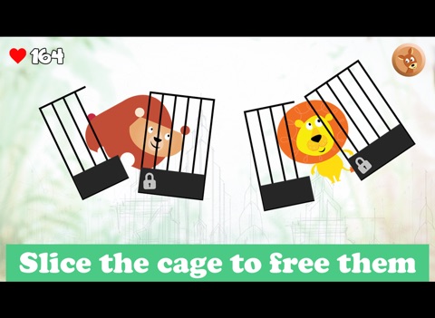 The game uses caged animals that are being tossed in the air. A simple swipe on the cage frees the animals and they fall down into the water below ( not seen but only heard )