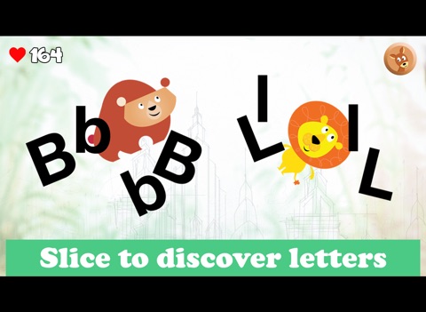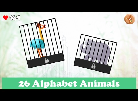 While freeing the caged animals the user listens to the alphabet the animals name starts with. The second slice of the cages brings up upper and lower case letters.