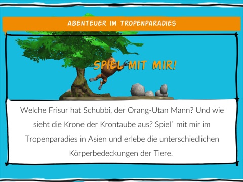 Ein besonderer Fokus liegt auf dem Modul für Vorschulkinder: Liebevoll gestaltete Spiele lassen kleine Abenteurer zu echten Tier-Profis werden – oder gar zu Flughunden mit Flughäuten. Natürlich nur digital! Weitere Inhalte für die verschiedenen Zielgruppen folgen in den kommenden Monaten.