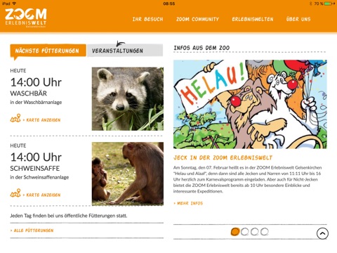 - Informationen zu allen Tieren in der ZOOM Erlebniswelt inklusive Fotos