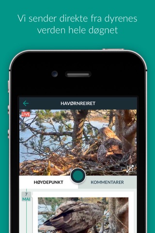 Vi zooomer inn på dyrene og sender direkte døgnet rundt fra et havørnreir og en hegrekoloni på Smøla. Få med deg siste nytt, direkte og ekte rett fra hekkesesongen. Våre journalister holder deg oppdatert med artikler og videoer og du kan få direktevarsling, ta skjermbilder og diskutere med andre det som skjer i og rundt reirene.
