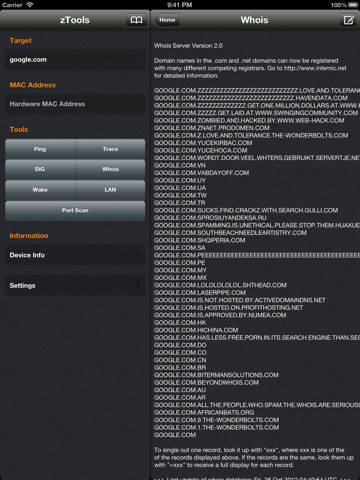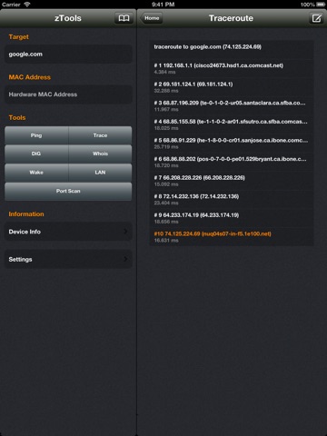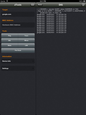 zTools is a very useful network utility for the iOS platfrom. It includes ICMP ping, traceroute, WOL/WOR, WHOIS and DiG tools.