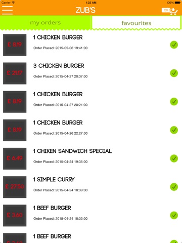 Favourites stored automatically of your favourite foods.