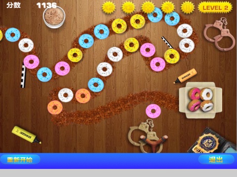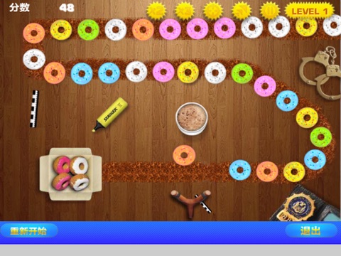 Shoot the colorful doughnut. Collect three or more doughnuts of the same color in one line.