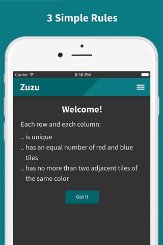 Enjoy Zuzu, a binary puzzle game that tests your logic and skill! If you like Sudoku puzzles, you will love Zuzu!