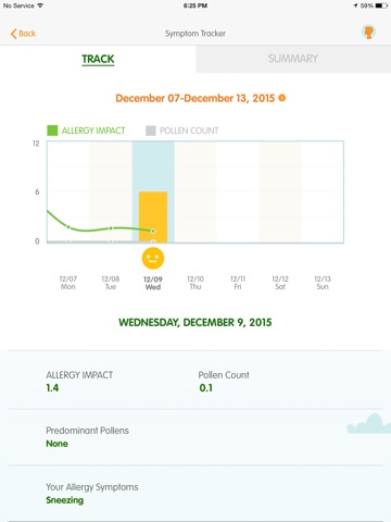 - Trends based on your tracked symptoms, including a personalized Allergy Profile.